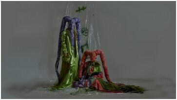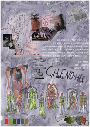 受新冠肺炎疫情的影响,近四个月的时间里,虽然48名同学身处在天南地北,但是在云端上坚持与导师沟通创作思路,探讨问题,完成一件件作品,让太多的不可能变成可能。面对挑战,共同转换思路,同学们用智慧克服重重困难推进创作,对设计作品进行了更多内涵的探究。面对席卷全球的疫情,设计如何为人类命运共同体而行动,以实现挑战与未来变革为动力,以设计智慧与责任担当为己任共同因设计而律动。如洪心怡同学,以《SIMPER》为主题围绕服装趣味性设计,探讨成长治愈的主题为设计切入点,采用tpu半透明和弹力网面料,模拟表皮质感及皮面牵扯效果,运用三维软件制作3D人脸图案。营造服装上的怪诞前卫,潜藏“趣”背后的忧郁基调状态。寓意面对创伤,我们用幽默自嘲的方式抵抗外界侵袭。汪楚楚同学的《OLIVIA》以服装图案的创意设计为方向,将插画转化为独特的服装图案,表达当灾难来临,胸怀大爱同担风雨,唯有爱与温暖才会生生不息。陈鹏航的作品《C17H18F3NO•HCL》呼吁关注弱势群体,以自身为出发点去对比这类弱势群体与我们的差异,从而总结对个人的性格塑造、个性发展、情感管理、生活习惯等等所带来的影响。也希望能引起人们对弱势群体的关注和关爱!面对人类共同体价值的所思、所想、所做,温大人用理性、灵感、智慧写出了答案。