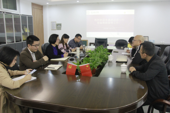 2020年10月29日,永嘉统战部副部长郑焕益、党派科科长金文通、乡贤工作负责人陈炳一行来性爱视频 交流工作,院长谢子静、副书记杨丽君、副院长胡文超、顾任飞、院办主任张丽出席会议。