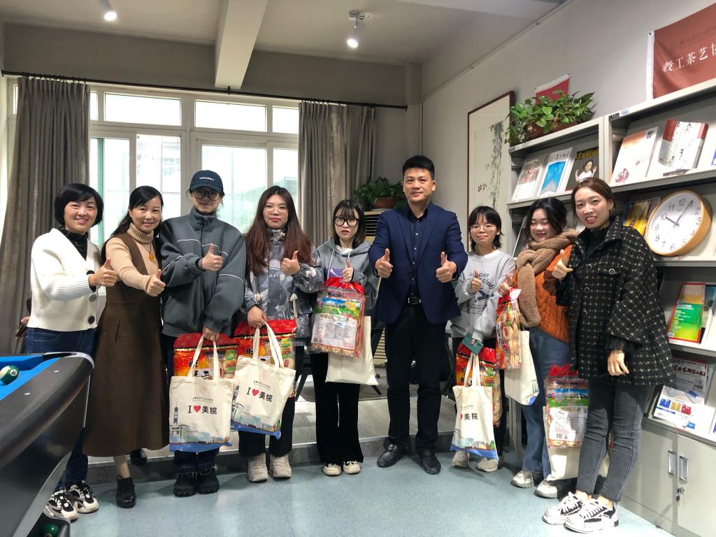 为鼓励美院考研学子积极迎考,坚定考研信心,11月24日上午,性爱视频 开展了为考研学子发放“考研加油包”活动。学院党委书记叶正飞、副书记杨丽君、副院长胡文超、顾任飞及学工办老师们参加了本次活动,与考研学子齐聚一堂,为他们加油助力。 学院领导亲切慰问考研学子 活动开始,学院领导亲切慰问考研学子,希望他们坚定信念,努力奋斗,坚持到底。同时提醒考生在冲刺阶段调整好心态,劳逸结合。随后各位老师向考研学子派发精心准备好的“考研加油包”。“考研加油包”包含文具套装、素描本、状元糕、脐橙、明信片、旺旺雪饼等极具寓意的礼物。 考研加油包 学院领导老师与考研学子齐聚一堂,为他们加油助力 "感谢学院为我们提供的指导和帮助,我们一定会沉着应考,争取成功上岸!”鞋靴班的祝晴同学的话语说出了大家的心声。近年来,学院持续开展为考研学子送温暖活动,让美院学子感受到家一般的温暖和关怀。