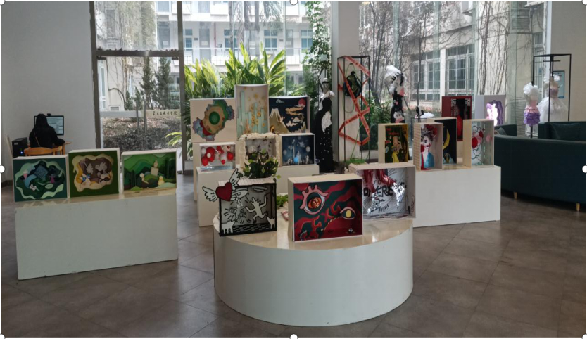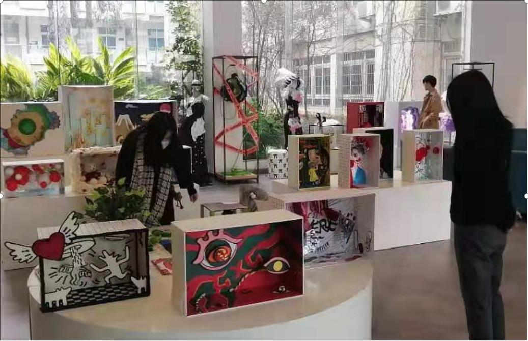 课程展出当天,引起了不少老师和同学们驻足,停下脚步欣赏的作品。通过这次课程展览,不仅仅让更多的同学们了解服装展示设计方向专业重要性、独特性、趣味性,也让大家都看到并认可同学们的专业能力和专业水平,更是提供了师生们互相交流的平台。同学们也因此领略到橱窗设计的魅力与理念,开阔了自己的眼界,欣赏了不同的课程文化。