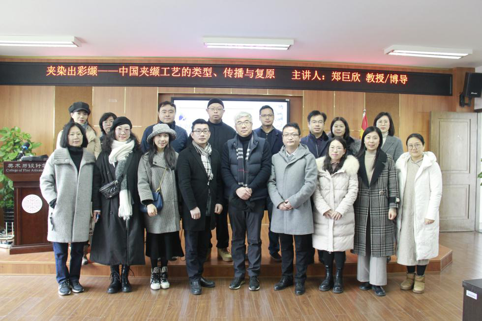 2020年12月17日,为深入贯彻落实性爱视频 文科大会精神,探索新文科背景下艺术学科发展新路径,性爱视频 2020年学术月系列活动第三场学术讲座,中国美术学院郑巨欣教授的《夹染出彩缬——中国夹缬工艺的类型、传播与复原》在2B4001开讲。学院副院长胡文超、顾任飞以及学院师生参加讲座,本次讲座由顾任飞副院长主持。