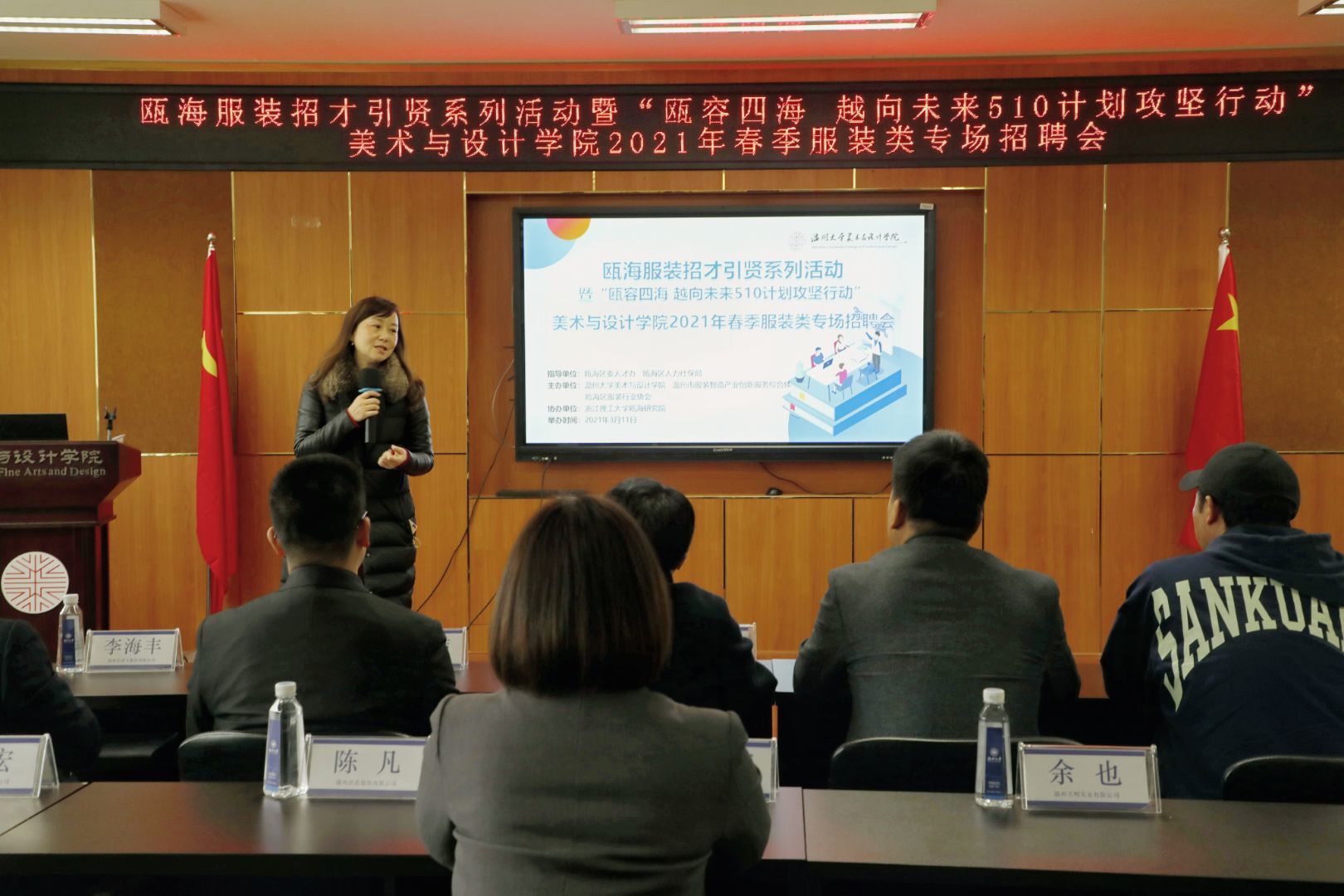 3月11日上午,在性爱视频 召开了瓯海服装招才引贤系列活动暨“瓯容四海越向未来510计划攻坚行动”性爱视频 2021年春季服装类专场招聘会。 此次招聘会由性爱视频 、温州市服装智造产业创新服务综合体、 瓯海区服装行业协会主办、由瓯海区委人才办 瓯海区人力社保局负责指导。 参加此次会议的嘉宾有性爱视频 党委书记叶正飞、温州市服装智造产业创新服务综合体负责人任力、瓯海服装行业协会秘书长苏立玲、性爱视频 党委副书记杨丽君、学院副院长顾任飞、以及11家在瓯海区优秀的服装企业负责人,近70位毕业生参加。 会议开始前,杨丽君副书记简要介绍了近几年性爱视频 的发展、人才培养以及毕业生就业的相关情况。随后,瓯海服装行业协会秘书长苏立玲对瓯海服饰产业的基本情况进行解读,浙江理工大学瓯海研究院副院长,温州市服装智造产业创新服务综合体负责人任力介绍了综合体的设计思想,从重点项目、功能分布、设计亮点三部分对每个楼层进行分析。在了解瓯海对于高校大学生留温政策之后,11家企业负责人通过介绍企业、岗位需求、待遇三方面来讲述,为此次参加招聘会的同学提供就业岗位的机会。 招聘会在热烈的掌声中圆满结束。就业是每个大学生都要跨过的一道门槛,是人生的重要转折点。万丈高楼平地起,将就业看作是展示自己的平台,充分发挥自己的才干,让梦腾飞。