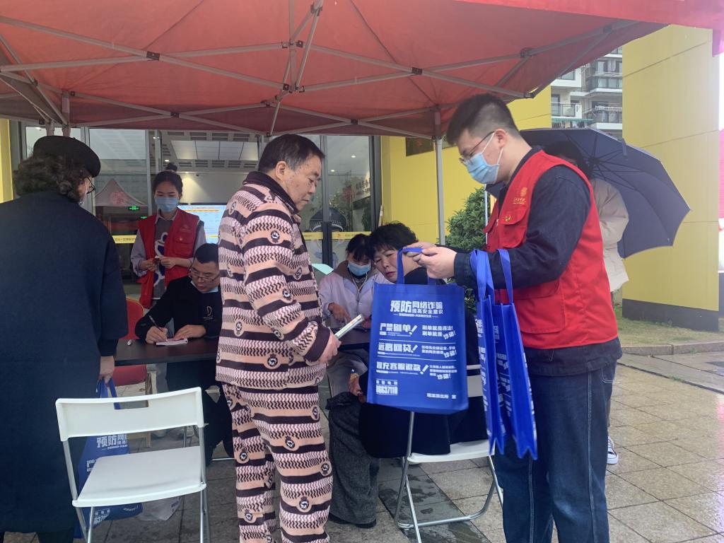 在上午的志愿服务活动中,学生党员们的身影活跃在每个帐篷下,热情接待参加活动的老人,为他们分发早餐,协助消防员宣传消防知识,配合民警开展防诈骗宣讲......虽然下着蒙蒙细雨,但丝毫没有影响学生党员们的热情,大家都坚守岗位、耐心讲解。