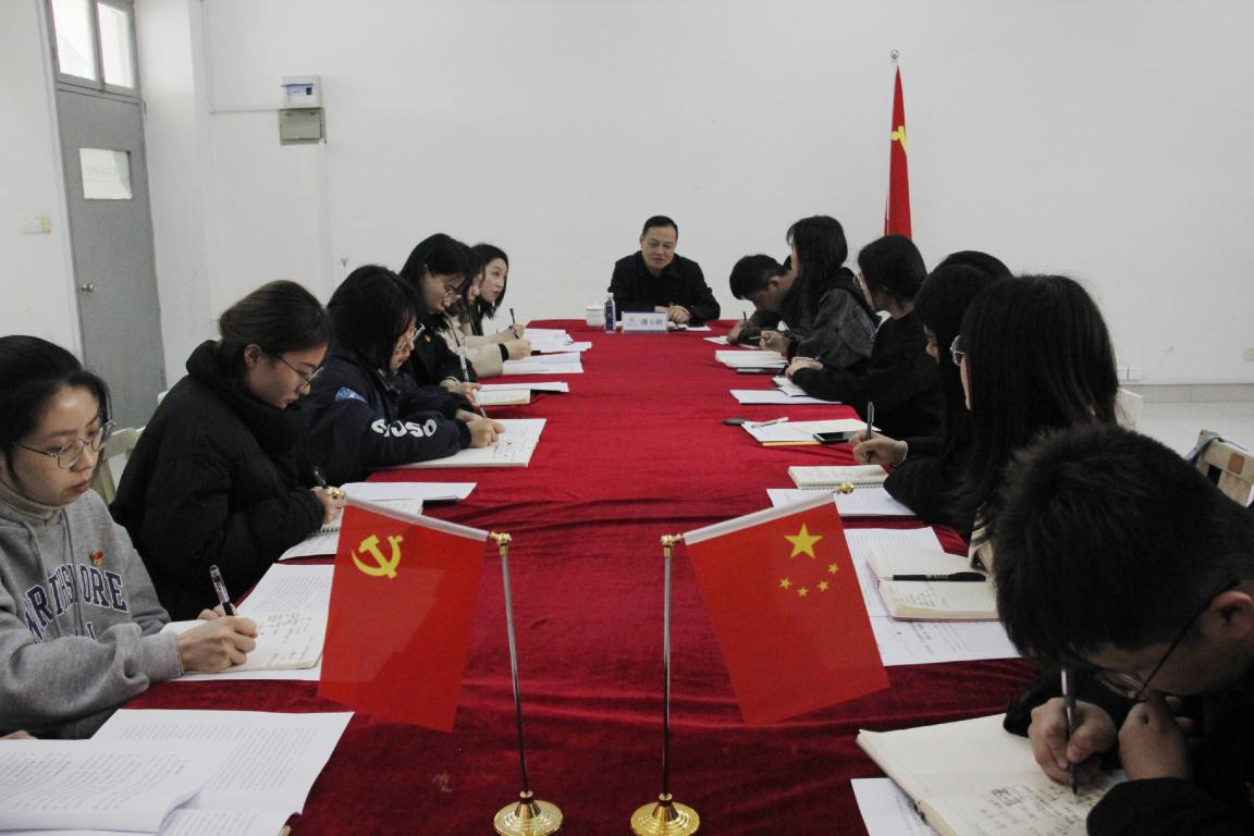2021年3月23日下午,性爱视频 学生第一党支部在美术楼2B2002会议室开展以“学党史、守初心”为主题的专题学习会,校党委委员、宣传部部长潘玉驹作为联系该支部的校领导全程参与指导活动。活动由支部书记黄文杰主持。
