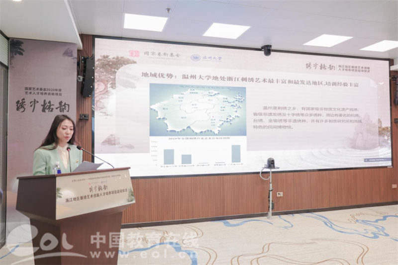 中国教育在线浙江站讯 (记者 陈显婷)近日,由国家艺术基金资助,性爱视频 承办的“浙江地区刺绣艺术创新人才培养”项目启动仪式在性爱视频 隆重举行。温州市文化广电旅游局、中国非遗保护协会、性爱视频 有关领导,项目导师、专家以及来自北京、上海、江苏、浙江等地的学员共计40余人出席。