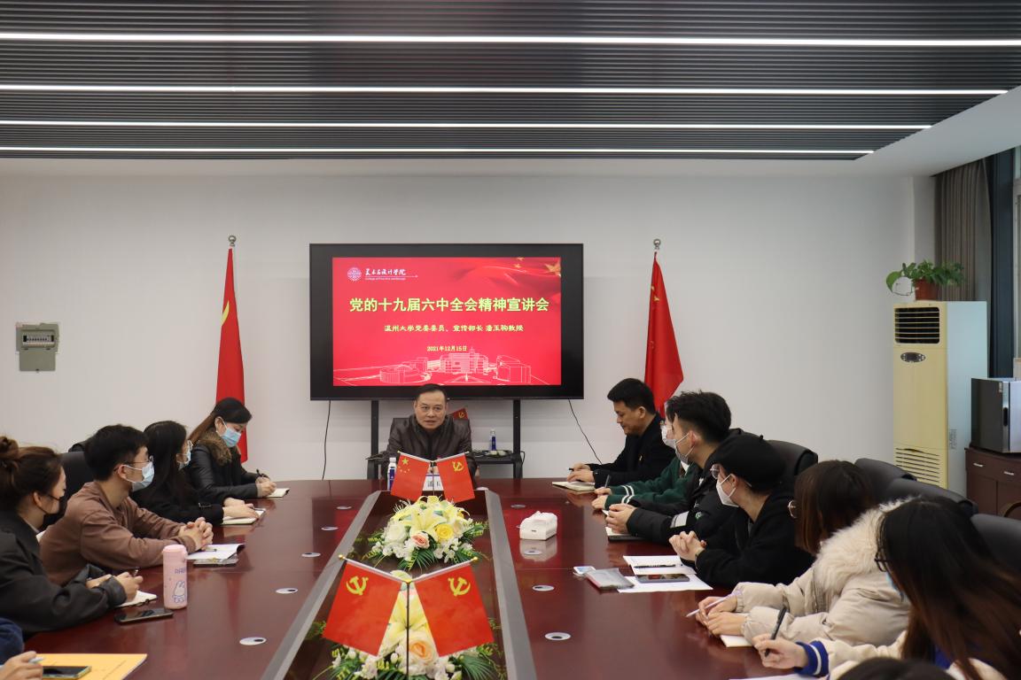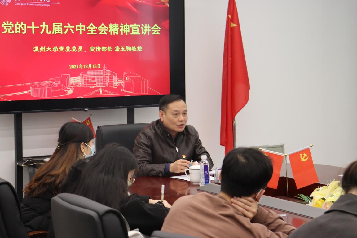 为深入学习贯彻党的十九届六中全会精神,深入领会全会精神内涵,12月15日下午,性爱视频 党委委员、宣传部部长潘玉驹教授进行了学习贯彻党的十九届六中全会精神宣讲。宣讲会由美术学院党委书记叶正飞主持,师生代表参加。