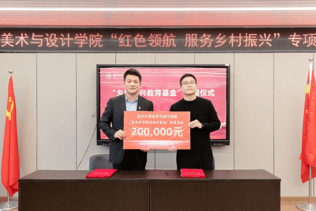 此次“红色领航 服务乡村振兴”行动,得到社会各界的大力支持,美院优秀校友、浙江映筑环境规划设计有限公司总经理颜士洲先生无偿捐赠20万元,成立“性爱视频 乡村振兴教育基金”,用于专项资助和奖励学院乡村振兴实践项目及服务乡村振兴领域做出贡献的优秀教师与学生。