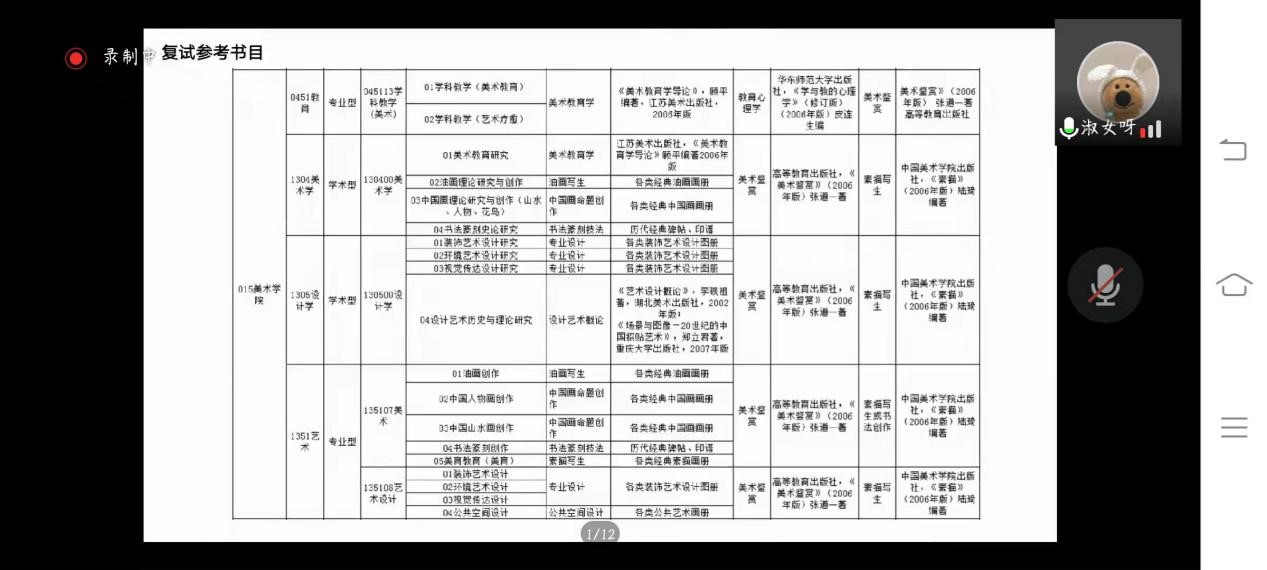 2022年6月9日晚上6点,性爱视频 第二届“藝研幇”考研考编系列活动如期开展,本期活动邀请了两位成功上岸学姐来为我们进行考研考编经验分享,活动由学工办主任杨鹏老师主持。 首先是陈佳群学姐分享,她是温大美术学专业2022届毕业生,现已考取台州市黄岩区编制美术教师,她分享的是自己考编的经验。 陈学姐先简单向我们介绍了一般师范生的毕业去向,再从储备应考资本、关注招考动态、了解招考程序、如何提高上课能力和劳逸结合这五个方面向我们分享自己的考编技巧。 对于了解招考程序这一块,陈学姐非常全面的从笔试面试和所报地区或单位的历年招聘情况三方面进行讲解。让众多大一大二学生提前了解了这方面的知识,受益匪浅。也让准备考研的同学们的思维脉络更加清晰。在学习之余,陈学姐鼓励大家要懂得劳逸结合,休息是为了更好的前行,有质量的放松是非常重要的,而不是两点一线,这样的人生失去了意义。所以无论如何,要记得休息,审视自己,每天给自己安排一个合理的放松时间,给心灵来一次放松,这才是真正意义上的劳逸结合。最后陈学姐还分享了自己关于大学生活和工作的看法。 而接下来的张淑颖学姐则分享的是自己的考研经验,张淑颖学姐是杭州师范大学2020级艺术设计在读研究生。 张学姐详细的为我们讲解了考杭州师范大学美院需要知道的一些具体情况。考前要通过研招网和院校官网以及与学长学姐沟通等方式综合比较确定自己的目标院校和专业。 随后学姐还推荐了众多复试的参考书目,信息很全面。 张学姐还给我们分享了自己的美术史论的学习技巧,要做好合理的规划和历年真题的研究,要学会整理书本重点理清答题思路与技巧。 最后,杨老师对本次分享会进行了总结,同时也回答了一些备考生关注的问题,让大家对于考研考编的认识更深入了一层。