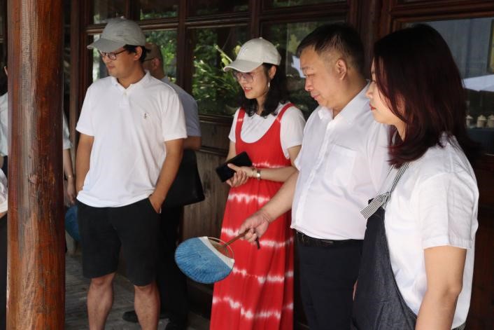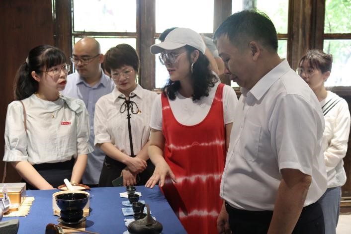 2022年7月5日,酷暑已至,艳阳高照。性爱视频 赵敏校长在校团委易招娣书记、性爱视频 叶如芳副书记等人的陪同下来到山根音乐艺术小村非遗民艺馆,对性爱视频 “非”传统手作实践队进行了走访慰问。山根小村开发商、浙江省民宿联合会金斌坚会长、带队导师叶茜以及实践队成员分别介绍了实践项目内容和成果。“非”传统手作实践的理念既有非遗的概念,又有突破传统的界限,是将传统非遗与当代生活、现代科技相融合。叶茜老师介绍说,“如今宋韵瓯风正当下,我们团队将起源于宋时的南戏作为主线,融合温州百工技艺进行创新转化,使之符合当代人的品味,实践同学们挖掘温州非遗,在民艺馆开展时尚非遗文化的传播。”