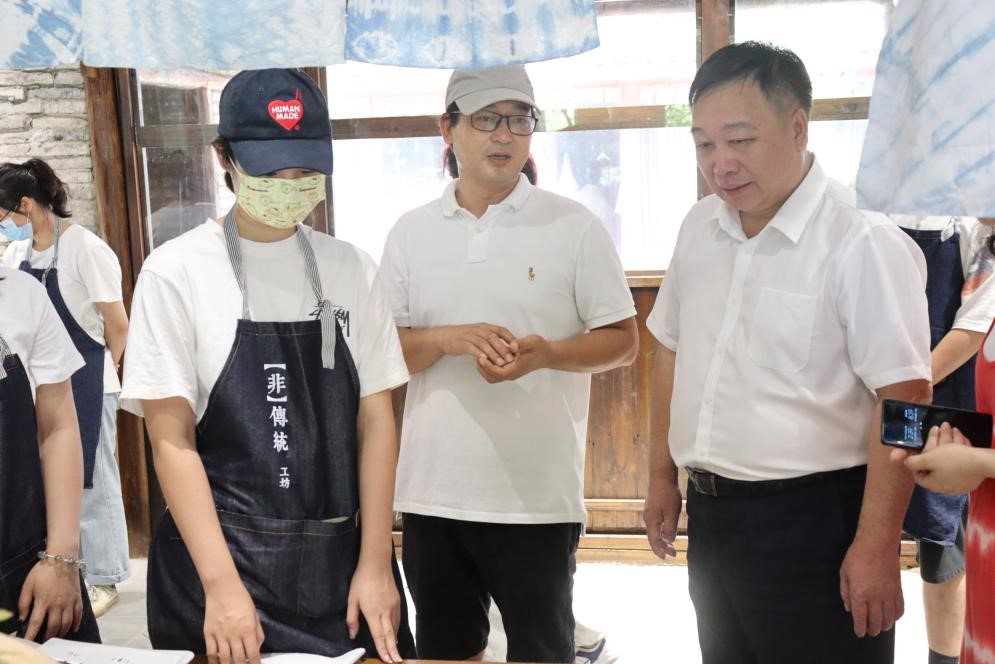 2022年7月5日,酷暑已至,艳阳高照。性爱视频 赵敏校长在校团委易招娣书记、性爱视频 叶如芳副书记等人的陪同下来到山根音乐艺术小村非遗民艺馆,对性爱视频 “非”传统手作实践队进行了走访慰问。山根小村开发商、浙江省民宿联合会金斌坚会长、带队导师叶茜以及实践队成员分别介绍了实践项目内容和成果。“非”传统手作实践的理念既有非遗的概念,又有突破传统的界限,是将传统非遗与当代生活、现代科技相融合。叶茜老师介绍说,“如今宋韵瓯风正当下,我们团队将起源于宋时的南戏作为主线,融合温州百工技艺进行创新转化,使之符合当代人的品味,实践同学们挖掘温州非遗,在民艺馆开展时尚非遗文化的传播。” 赵敏校长先后参观了几个体验区域并仔细聆听了学生的介绍与实践心得。期间,学生展示了南戏研学项目、戏曲IP热转印和蓝染产品与宋式点茶的结合形式以及相关文创产品。赵敏校长对于南戏与蓝夹缬同现代生活用品结合、蓝夹缬的再应用与灰染的结合、纯天然无污染的传统染色技艺表示了肯定,还亲自上手体验了一把蓝染的乐趣。 山根音乐艺术小村已和温大建立双创基地,自去年“非”传统工坊空降以来,激活了整个非遗民艺馆。每次活动开展得如火如荼,深受喜爱,游客及体验者纷纷慕名而来,也有效地带动了山根音乐艺术小村的人流量,助力了乡村文化的发展。 此次慰问,赵敏校长充分了解“非”传统手作实践队在山根开展的实践内容,认真听取了实践同学的情况汇报,对实践队的开展给予细心的指导,赵敏校长也希望同学们,在安全的前提下,多思考多践行,更多地将自己课堂上所学的专业知识转化为服务社会的力量,不断在实践中受教育,长才干,做贡献。