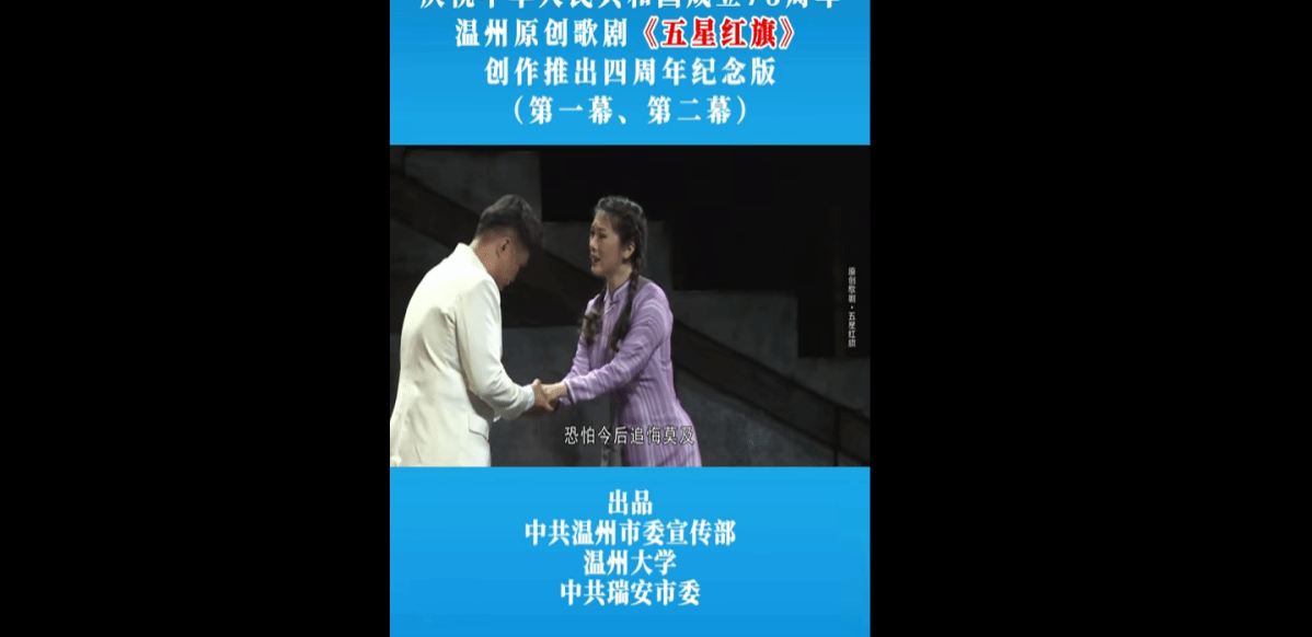 通过线下自行观看温州原创歌剧,各位学生干部们了解以五星红旗的诞生为主线,通过温州人、性爱视频 校友曾联松设计国旗的四剧幕,反映浙江青年将个人情感抉择与家国命运紧密相连,颂扬勇于担当、矢志不渝的革命精神与爱国情怀。此歌剧将人物与故事置于波澜壮阔的近代中国革命历史背景,通过抗日战争、解放战争与新中国成立等史实铺陈,展现了中国共产党领导下的广大人民群众为新中国建立创造的不朽功勋,赋予了五星红旗鲜明的政治内涵、历史内涵与文化内涵。