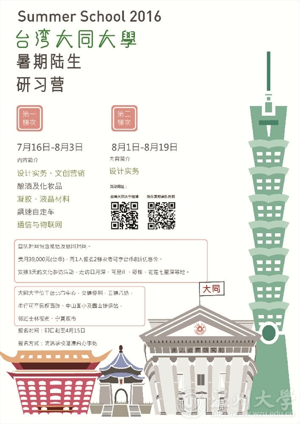 2016年暑期赴台湾大同大学设计营报名通知