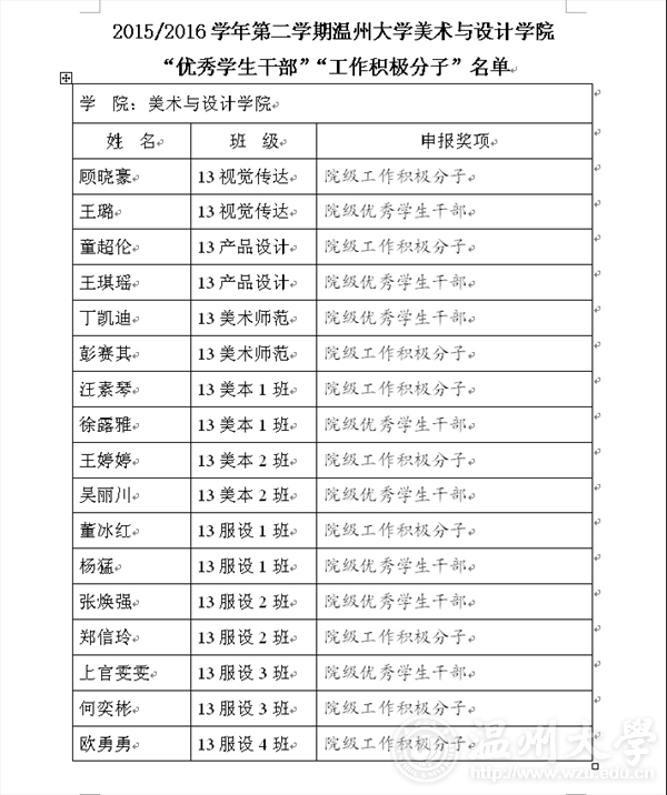 现将2015-2016学年第二学期性爱视频 “优秀学生干部”“工作积极分子”名单公示如下,如对评选结果有异议,请及时联系美术学院学生科。