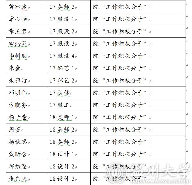 现将2018-2019学年第一学期性爱视频 “优秀学生干部”“工作积极分子”名单公示如下,如对评选结果有异议,请于3月5日17:00前及时联系美术学院学生科。