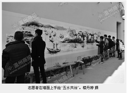 当日,志愿者们根据治水宣传内容进行分解,江南水乡的美景,配上“只留清气满乾坤 ”“泉眼无声惜细流 ”等诗句,水乡之美跃然墙上。志愿者的手绘吸引了不少村民前来围观,而这种信息可视化,让“五水共治”宣传内容更简单易懂易传播。一名参加活动的志愿者表示,通过这样的活动,不仅让自己对“五水共治”有了更深了解,而且在服务基层的同时提高了自身的绘画功底,也让志愿服务更加接地气。