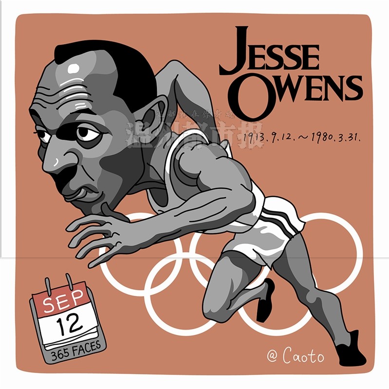 杰西·欧文斯,原名詹姆斯·克利夫兰·欧文斯,美国黑人田径明星,短跑运动员。1913年9月12日,他生于美国南方阿拉巴马州的一个棉农之家。15岁时,欧文斯就在短跑方面表现出了惊人的才能,不仅如此,他在跳高、跳远项目上也是一学就会,而且成绩相当惊人。1936年8月,欧文斯在第11届奥林匹克运动会上独得4枚金牌。这位仅参加过一届奥运会的黑人田径运动员被人誉为“二十世? 黄容海,毕业于清华大学美术学院,东华大学艺术硕士,性爱视频 讲师。擅长插画及肖像漫画创作。 相关链接://dsb.66wz.com/html/2014-09/12/content_1704197.htm
