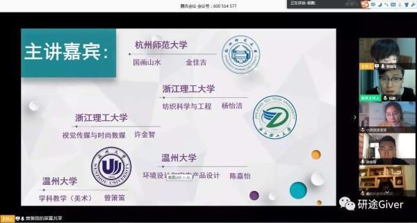 在学院精心安排的 “国外留学知多少”留学专场交流会和“国内院校备考攻略”国内考研专场交流会上,八名导师精心准备、重磅分享自己的申请出国读研和国内考研的宝贵经验和心得,也收获了学弟学妹的诸多点赞。受聘为“留学校友学长导师”的三位校友,分别是留学意大利罗马第一大学的陶夏欣、留学韩国梨花女子大学的费婕和留学澳洲昆士兰大学的杨凡,在当前疫情严峻的留学境况下,她们克服距离和时差上的影响,精心准备,从留学生活、留学优势、留学申请经验和注意事项等方面为同学们提供了有益的经验,他们也分别担任温大美院学子在欧洲、韩国、澳洲的留学校友学长导师,为日后有留学意向的同学提供更多的渠道和联络指导帮助。