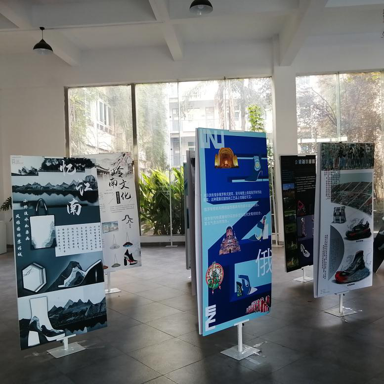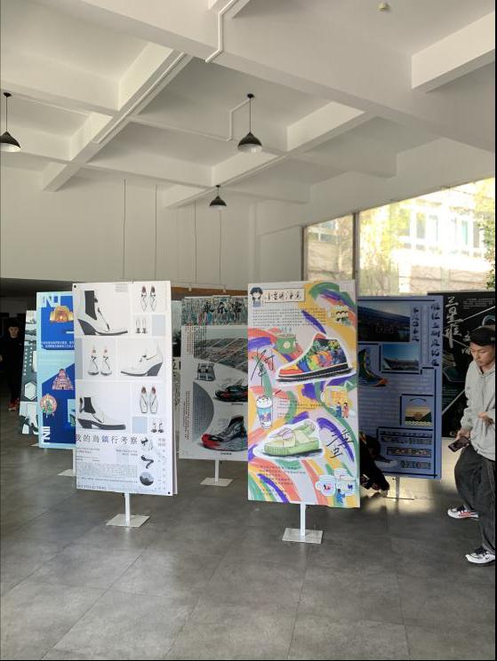 2020年11月9号早上8点20分,由祝忠良老师指导的17服设(鞋履与饰品设计)班《社会实践(艺术采风)》作品展览在性爱视频 2B一楼展厅展出。展出时间为11月9日至17日。由于疫情影响,本次艺术采风经学校审批后,少部分同学由学院老师带队出行,大部分同学则采用自行就近选择考察地出行的方式同时开展。正因如此,本次采风考察显得格外有别于以往,考察地点有乌镇、西安、上海、四川等,学生们通过为期一周至三周的艺术考察感受到了当地的艺术气息、文化底蕴。本次展览以展板形式呈现,展示内容主要由同学们在艺术采风过程中收集的当地民胜古迹图片为主,结合当地艺术相关的传统纹样、色彩等民俗文化资料,以图文结合的形式制成。经教师指导,同学们在大量收集考察资料的基础上,进行提炼设计元素并做深入研究,运用于鞋款、包款饰品等设计。