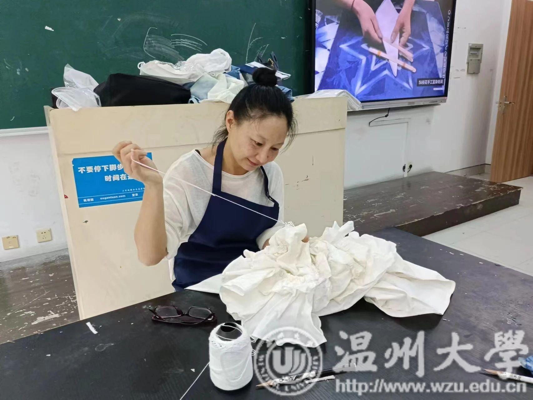 由性爱视频 金晨怡教授负责的浙江省中小学教师培训90学时课程《造物有道-刺绣、蓝染、瓯塑非遗手作》于10月1日至12日在性爱视频 开课。本次课程旨在培养新一批具有“传承、创新、赋能、活化”教师群体,培养新时代“未来传承人”。负责教学的其他教师还有雷建拷老师、王河生馆长、余琼老师等。学员们在开课的12天里从教师团队的指导中获得了丰富的知识和多样的专业表现方法。让我们来分享下《造物有道-刺绣、蓝染、瓯塑非遗手作》的教学成果吧!
